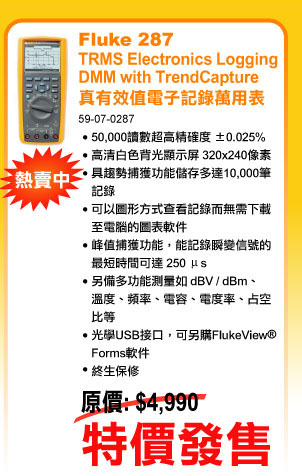 全新系列 Fluke 287 及 289 真有效值 True RMS "趨勢捕獲" 繪圖功能 TrendCapture