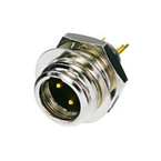 3 pole TINY xlr male chassis connector, nickel housing, gold plated contacts, max. panel thickness: 6 mm
